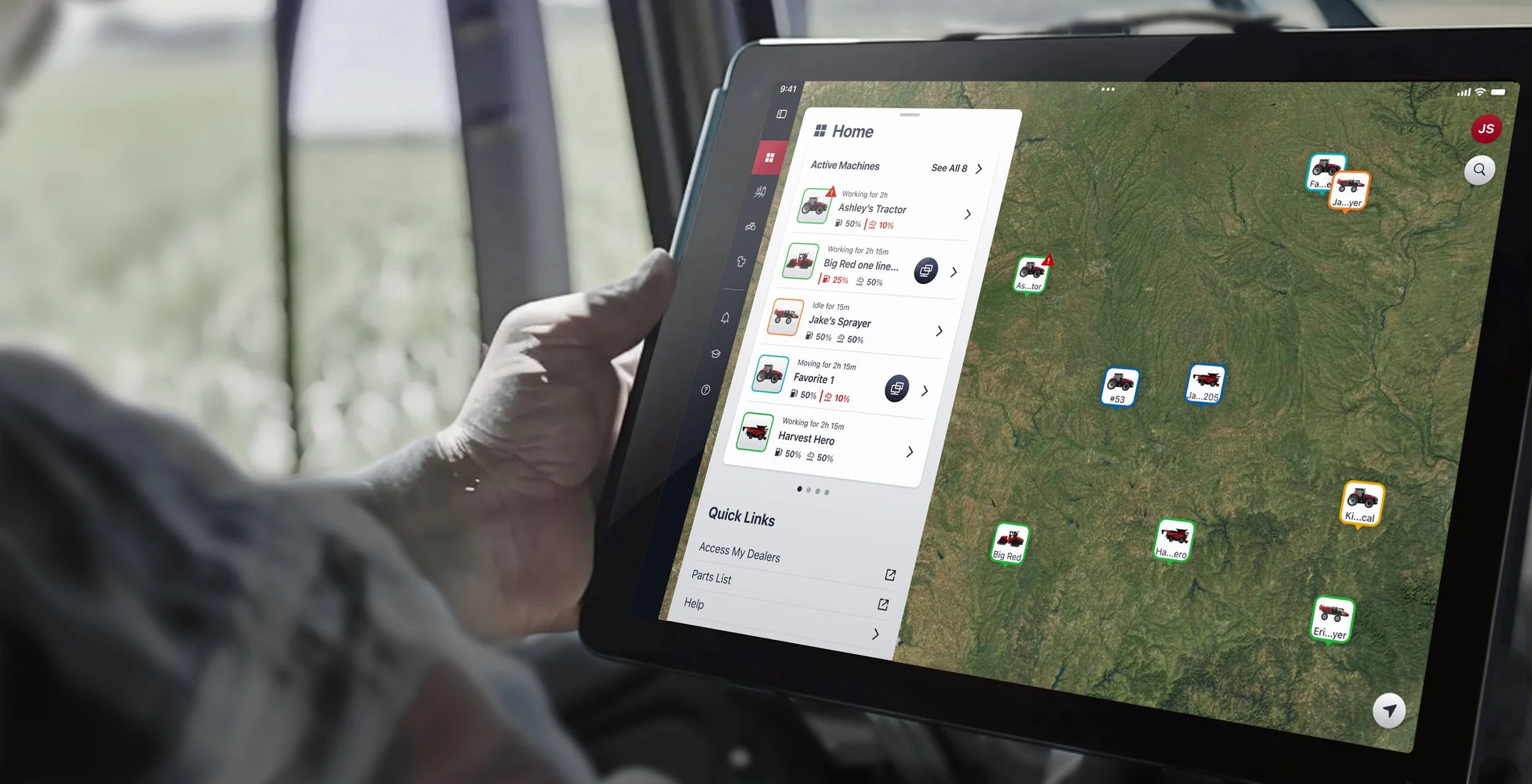The platform combined machine diagnostics, yield maps, weather, logistics, and field operations, but the experience lacked cohesion across brands and interfaces. Tandem was brought in to create a stronger shared foundation that could make the platform easier to navigate, easier to read, and easier to scale.